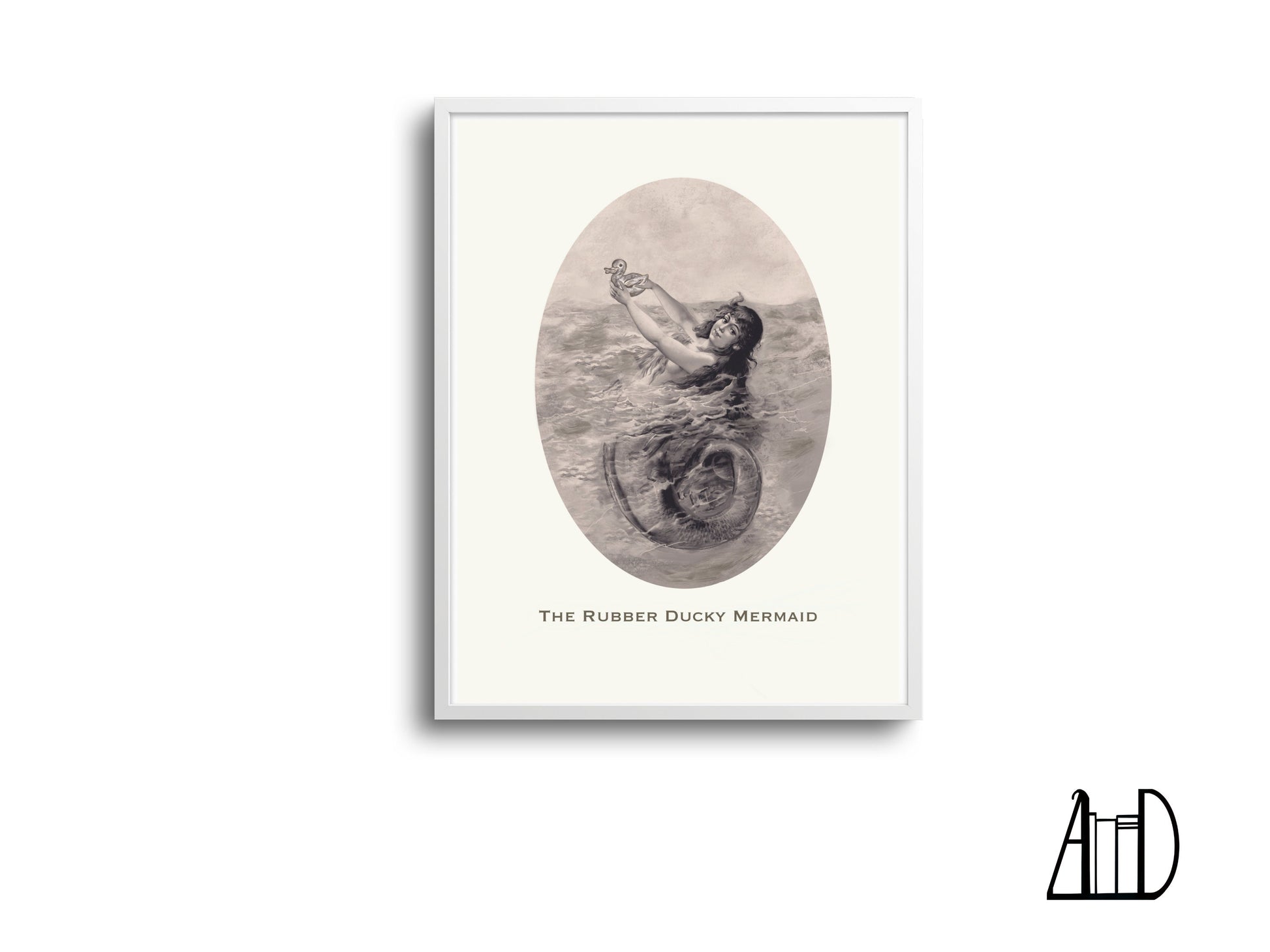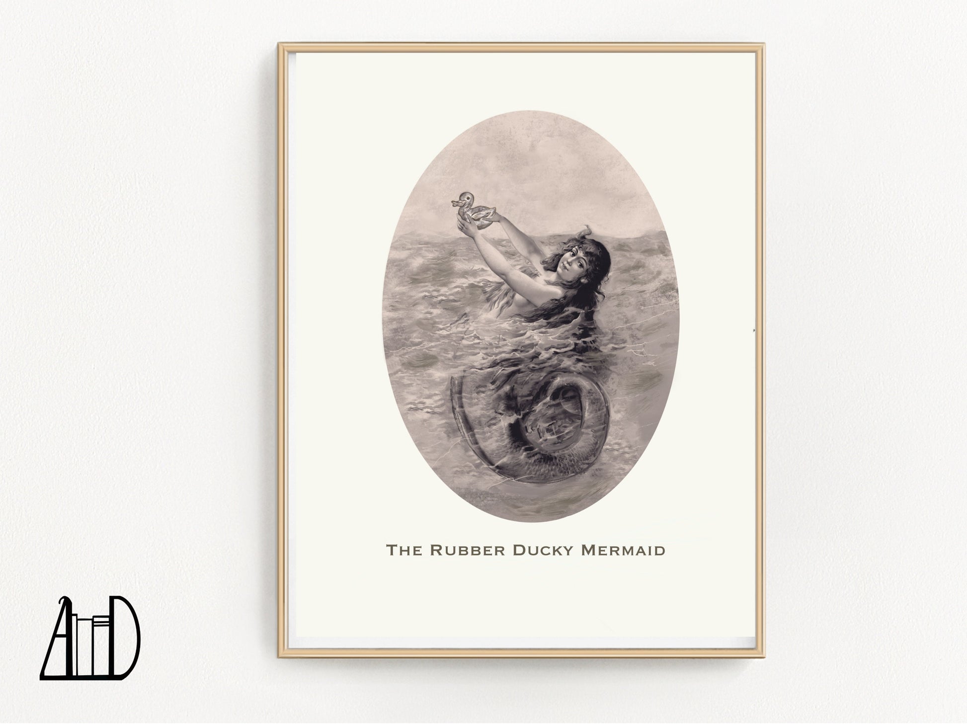 Mermaid Bathroom Rubber Ducky Quirky Art Print, Powder Room Bathing Siren Wall Decor, Rubber Duckie Wall Art Funny Mother's Day Gift