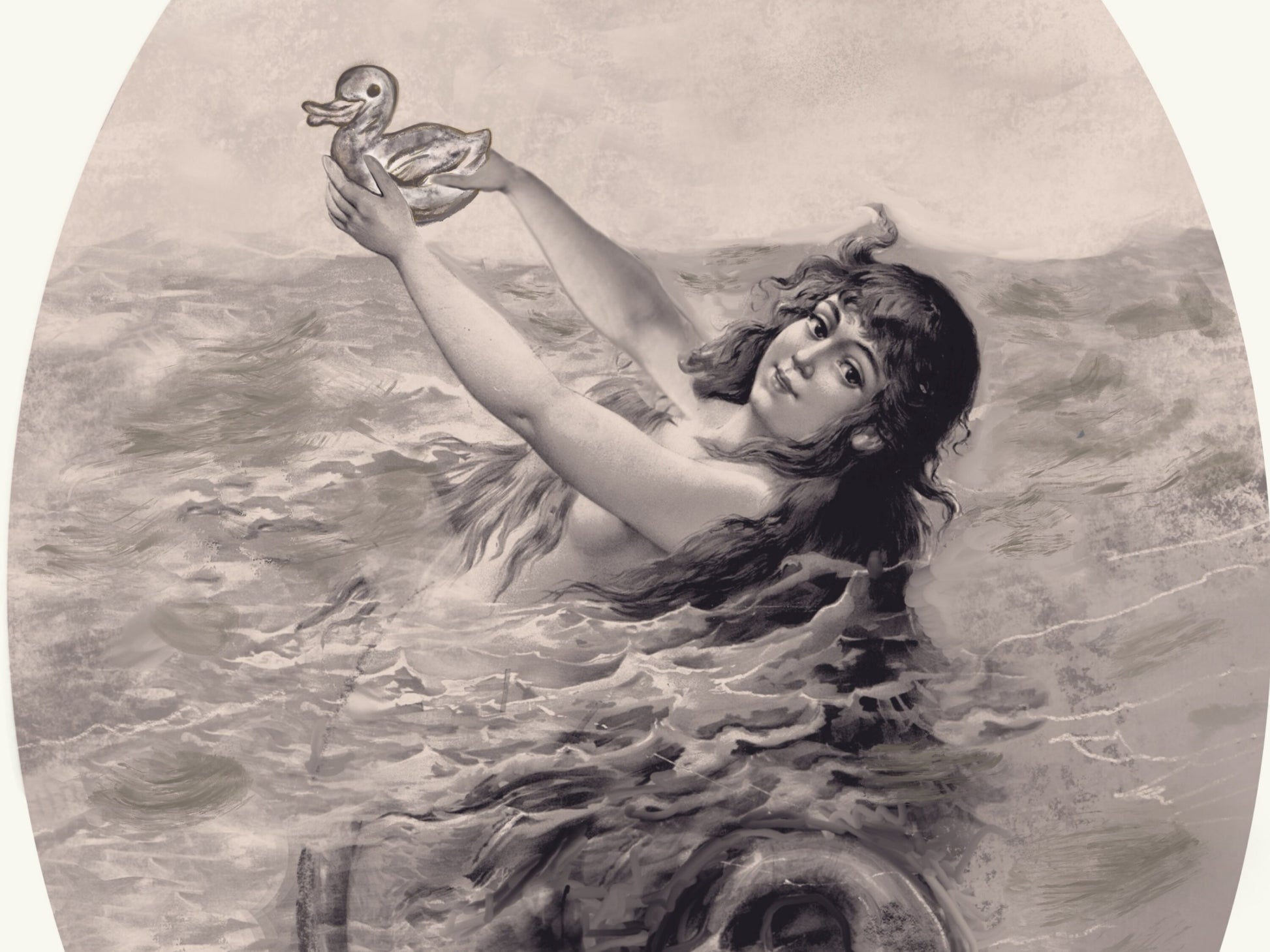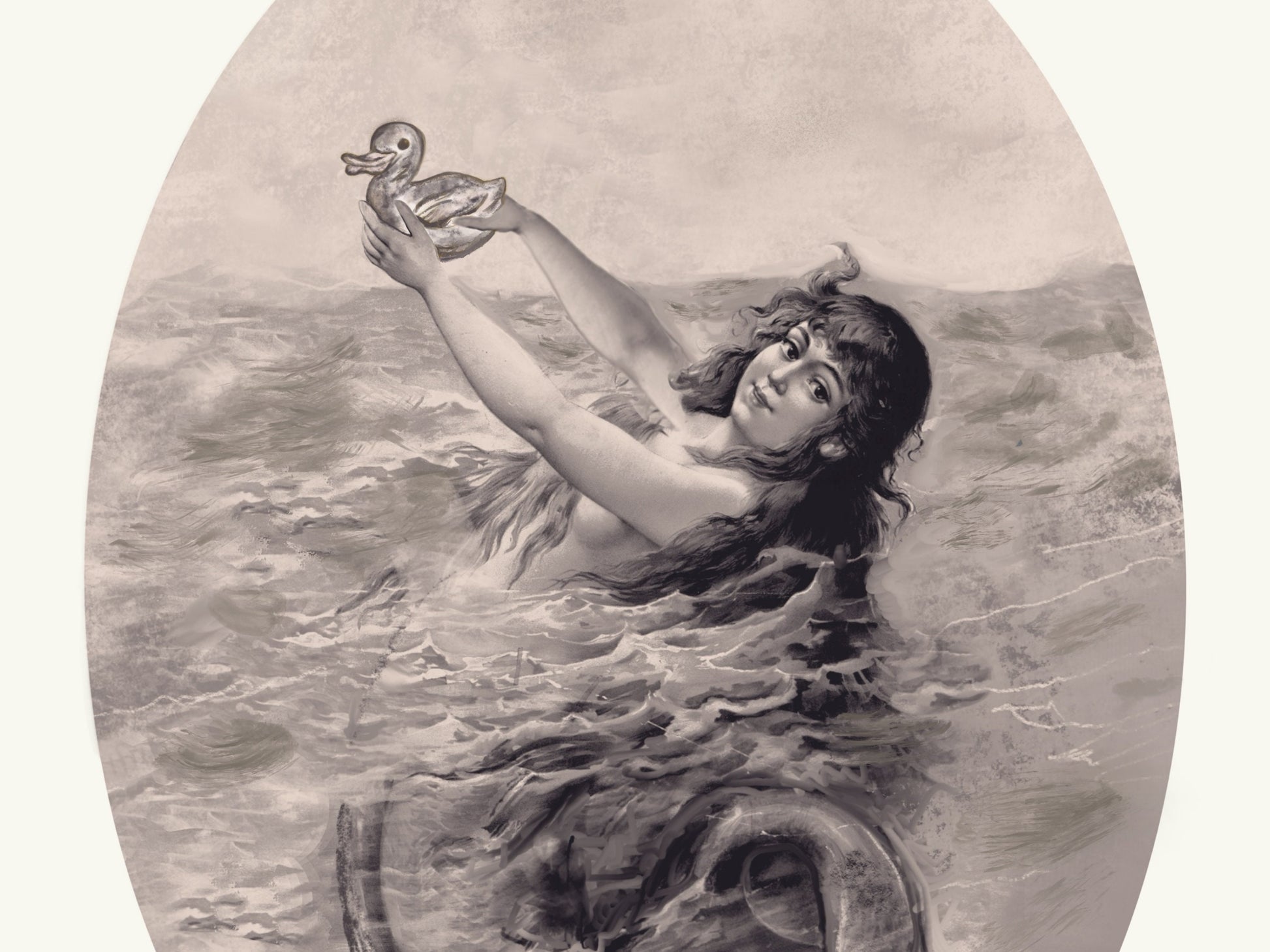Here's a magical bathing mermaid who is proudly displaying her rubber ducky
