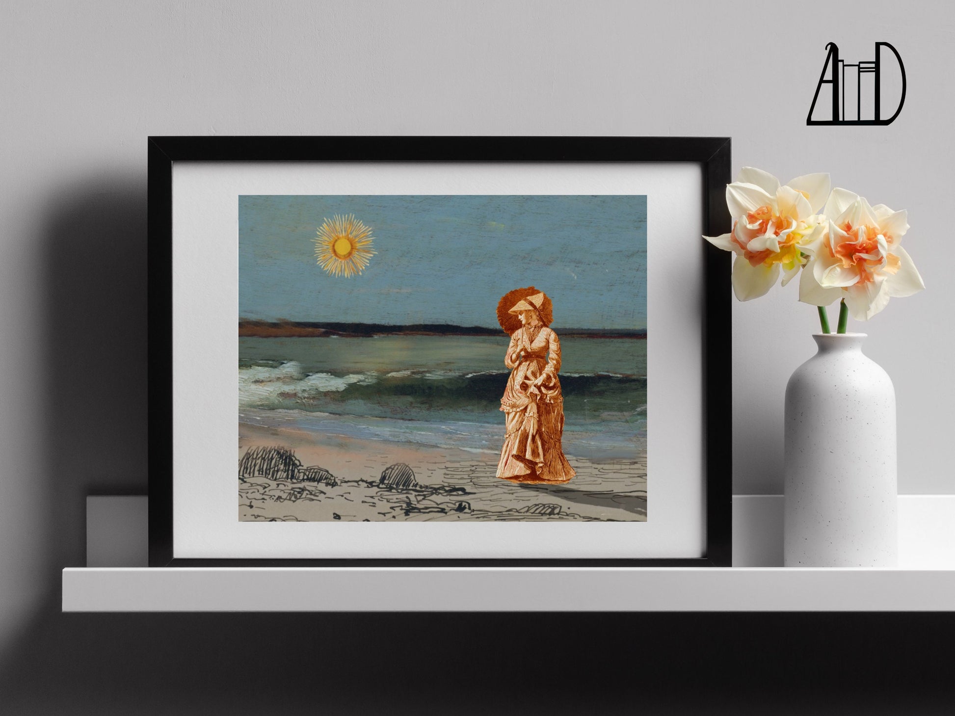 Seascape Beachy Collage Art Print, Victorian Beach Ocean Scene Poster, Unique Muted Collage Landscape Wall Decor 8x10 Physical Print
